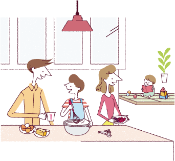 楽しい時(shí)間を共有できるスペースをつくることも、コミュニケーションにつながります。例えば、花壇や家庭菜園などはいかがでしょうか。親子一緒になって花や野菜のお手入れをしたり、開(kāi)花や収穫を楽しむ時(shí)間は、コミュニケーションだけでなく、暮らしにかけがえのない豊かさを生み出してくれるでしょう。また、絵畫やアートを飾るのも、會(huì)話のきっかけづくりになります。五感への刺激は、感性を育む情操教育にもつながるため、子育てには多くのメリットがあると言えるでしょう。