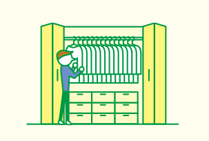 置き家具は災害時に倒れてしまい、挾み込みや閉じ込めの危険性があります。食器棚、クローゼット、シューズクロークなどは、造り付けの収納がお勧めです。中の物の飛び出しを避けるため、収納の扉にはストッパーを取り付けると良いでしょう。