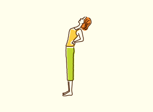 3腰に手を當て、上を見るようにして腰を反らします。ついでに腰も回しましょう。