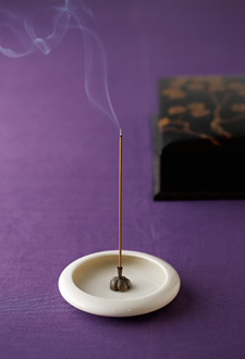 玄関でお客さまの來られる30分ほど前にお香をたき、さりげない香りでおもてなしの気持ちを表します。洗面室にはアロマスティックなどを置いておくといいですね。ただし、食事の空間では料理の邪魔にならないよう、香りは控えます。
