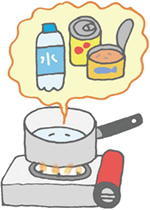 どんなときでも食べることができれば元気になれます。限られた水や燃料を使って、おいしく安全に食べる知識を身につけておきましょう。