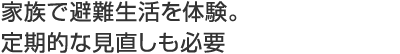 「水道、電気、ガスを使わない生活を體験する『おうちキャンプ』をおすすめします」。水がどれだけ必要か、食事やトイレはどうするかなどが実感でき、何を備えればいいかがわかります。備蓄や防災グッズは年に1~2回、わが家の防災の日を決めて見直すことも必要です。家族の電話番號やメールアドレス、病気や薬などのお互いの情報や避難ルートも確認をしておきましょう。