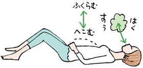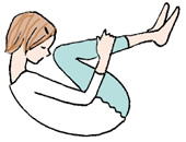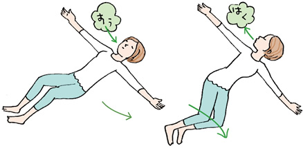 あおむけになって、両膝を曲げて両腕でゆっくりと胸に引きつけて體を小さく丸める。