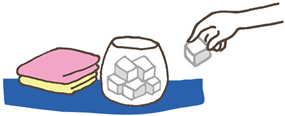 水で濕らせたスポンジでボウル全體をこすり、水洗い。タオルを取り替えるときは周辺の水はねを拭いておきましょう。