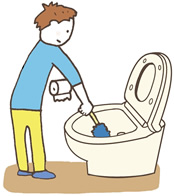 トイレを使用したら、ブラシでこすり、洗い流しましょう。