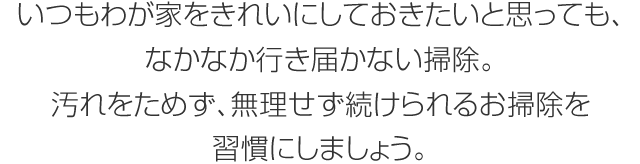 いつもわが家をきれいにしておきたいと思っても、なかなか行き屆かない掃除。汚れをためず、無理せず続けられるお掃除を習慣にしましょう。