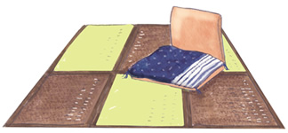洋室の場合は置き畳やラグを敷き、座椅子を置いて、床座で過ごしてみましょう。目線を低くすることで、リラックス感が増します。い草や麻など肌觸りがさらりとした素材を選ぶと、涼やかに過ごせます。