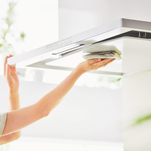 汚れのもとになる油分の侵入を抑える構造のレンジフード。普段は軽く拭くだけでOK。