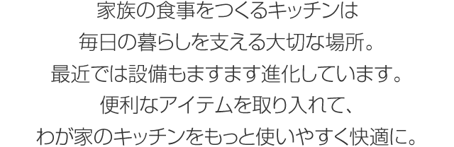 ![[住まいかた暮らしかた]キッチンから暮らしを豊かに](images/comfortableLife/title.jpg)