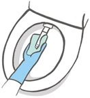 使ったついでに、便器の內(nèi)側(cè)はブラシでこする。特に輪じみになりやすい水位線の周辺や汚れのたまりやすいふち裏はしっかりと。