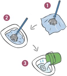 • 1 汚水が飛び散らないように、ビニールシートの真ん中に穴を開けてラバーカップを通す。
