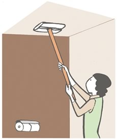 天井、壁、床の順にペーパーモップなどでホコリを拭き取り、その後、固く絞ったぞうきんで床を拭く。