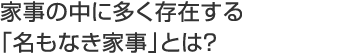 家事といえば、料理、洗濯、掃除といった言葉を連想します。しかし「脫ぎっぱなしの服をクローゼットにかける」「不要なチラシを捨てる」「手洗いのタオルを取り替えて洗濯かごに入れる」といった、いわば“名もなき家事”が多く存在します。それら一つひとつは些細(xì)なことでも、毎日のこととなると、大変な手間がかかるものになります。