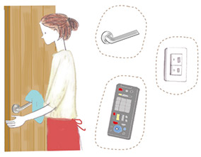 ドアノブやスイッチ、リモコンなど、家族が毎日觸れる場所は要チェック。皮脂汚れが付いて意外と汚れています。