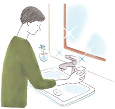 洗面室、浴室、キッチンなどの水栓金具や鏡がピカピカになると、その空間全體が明るい印象にもなります。