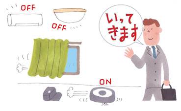 照明やエアコンがオフになり、カーテンが閉まる。そして、お掃除ロボットが始動(dòng)。外出している間に部屋をきれいにしてくれる。