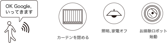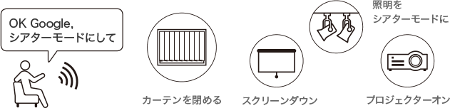Googleアシスタントを搭載したGoogle Homeとの連攜、対応した機(jī)器により実現(xiàn)できます。