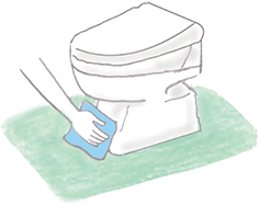 尿の飛び散りによるアンモニア臭が主なニオイ。クエン酸水を使って拭き掃除を。特に便器と床の境目に汚れがたまりやすいので注意。酸性の便のニオイは重曹で中和。