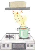 ニオイが発生したら、換気をしてニオイを追い出します。その場合、空気の出入り口は2カ所以上つくりましょう。また、調理をするときは、事前に換気扇を作動させておくと、風の流れができ、効率よく排気できます。