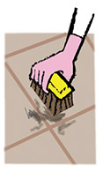砂やホコリは、こびり付く前に取り除きましょう。濡らした新聞紙をまいて掃くと、ホコリが舞い上がりません。