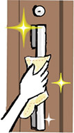 樹脂やステンレス製のドアは、固く絞った雑巾で水拭き、乾拭きをします。木製のドアは濕気を嫌うので、乾拭きをしてホコリを落とし、水拭きは避けます。ハンドル部分に付いた手あかは、薄めた中性洗剤を付けて拭き、水拭き、乾拭きをします。