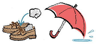 雨で濡れた靴は、乾かしてからシューズボックスへ。傘も雑巾で拭き、開いて乾かしてからしまいましょう。