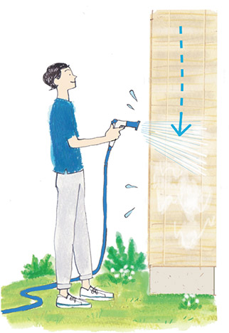 汚れが目立ってきたら、ホースを使って、上から下へと水洗いをすると、すっきりきれいに。