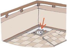 マットを開けて排水口(ドレイン)のゴミを取り除いておく。また、バケツの水などは一気に流さず、ゆっくり流す。