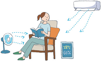 溫濕度計で室內(nèi)の溫度や濕度をチェック。今いる環(huán)境を知り、エアコンの溫度調(diào)節(jié)を小まめに行うこと。扇風(fēng)機を併用すると同じ溫度でも、涼しく感じます。