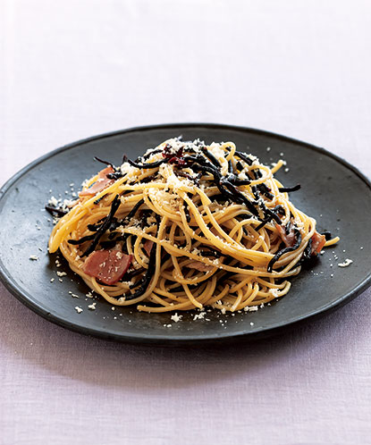 油と相性の良いひじき。食べごたえのある長ひじきがスパゲティとなじみます。