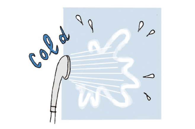 2. 冷たいシャワーで浴室の溫度を下げる