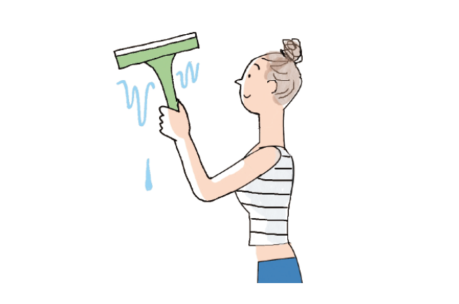 水滴を殘したままにしておくと水あかが付きやすくなります。浴槽や壁などをバスタオルなどで拭いておくとよい。壁はスクイジーを使うと便利。