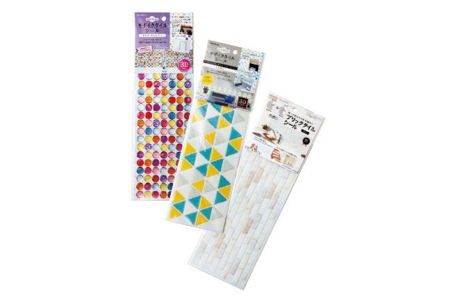 立體感のあるモザイクタイル風のシールも。キッチンや洗面臺まわりのリメイクのほか、テーブルトップやトレーなどの小物にも。