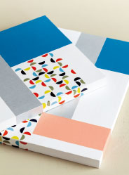 1枚ずつ柄を変えてもOK。カラーボックスが分解できないときは、厚紙に貼ってはめ込んでもよい。