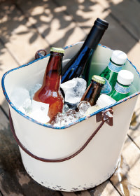 それぞれお好みの飲み物を氷を入れたバケツに冷やしておけば、冷蔵庫に取りに行く手間が省ける。