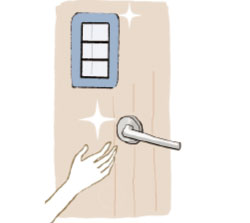 部屋の掃除をこまめにしていても、見逃しやすいのがドアのレバーハンドルやスイッチプレートなど。手でよく觸れる部分には皮脂や手あかなどが付き、黒ずみます。布に水または薄めた中性洗剤を含ませて、固く絞って拭き取りましょう。油分を溶かす作用があるエタノール(消毒用アルコール)を、布にスプレーして拭くのも効果的。揮発性が高いので二度拭き不要で、除菌効果も期待できます。