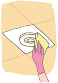 水または中性洗剤を入れたぬるま湯に浸した布で汚れを拭き取った後、水拭き、から拭きをします。 -