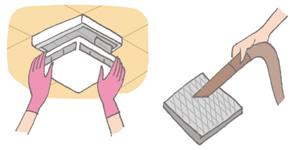 カバーは外して、吹出グリルと同様、汚れを拭き取ります。フィルターは掃除機でホコリを吸い取り、汚れがひどい場合は、水または中性洗剤を入れたぬるま湯で軽く押し洗いし、洗剤を流して自然乾燥を。