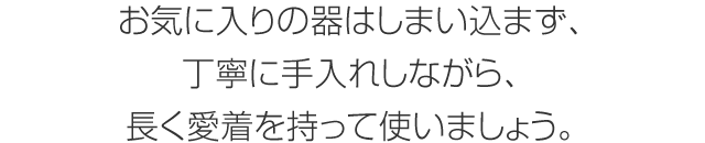 陶器は磁器より目が粗く、吸水性が高いので、シミやニオイがつきやすく注意が必要です。電子レンジ、食器洗い機の使用は避けましょう。