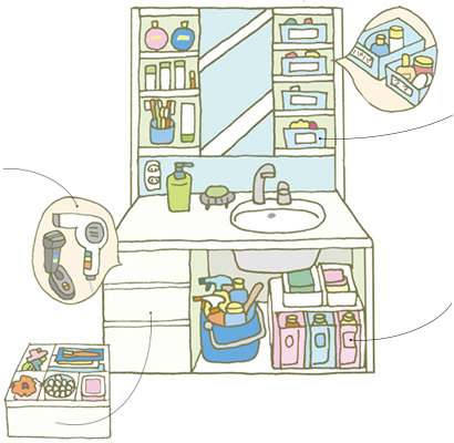 洗面室の収納スペースが足りなくてものがあふれている、収納はあるけれど使いこなせていない…。