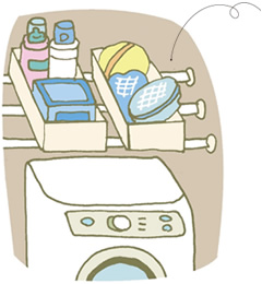 洗濯用品の収納場(chǎng)所がないときは、洗濯機(jī)の上のスペースを有効活用。また、洗濯ばさみやハンガーなどは干す場(chǎng)所の近くに収納すれば、洗濯?jiǎng)泳€(xiàn)もスムーズです。