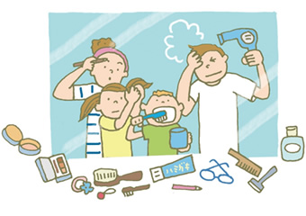 家族それぞれが使う化粧品や整髪料など、さまざまな小物が収納しきれず、出しっ放しになりがち。一度出したままにすると、次々と散らかっていきます。
