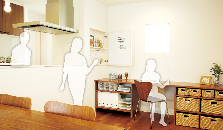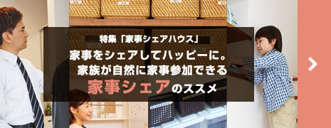 シェアするためのポイントは、家事に関する情報とルールを共有すること。左のページでは、自然にそれをかなえる住まいのアイデアをご紹介します。