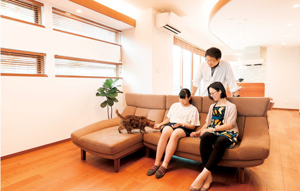 Kさま一家は3人のお子さま、3匹の貓と暮らすにぎやかなご家族。マンションからの住み替えにあたって新居に希望されたのは、みんながのびのびと自然體で暮らせることでした。
