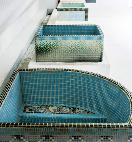 大浴場などの壁を飾っていたモザイクアートやタイル絵