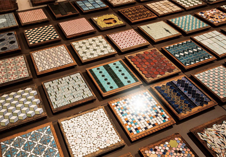 今も昔も、人の手で丁寧に作られているモザイクタイル。ミュージアム2階に展示されているメーカーの最新製品からも、それを作った人の手の溫かみが伝わってくるようです。