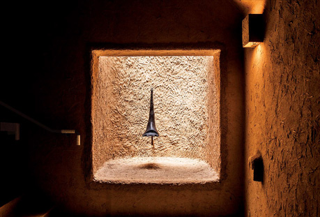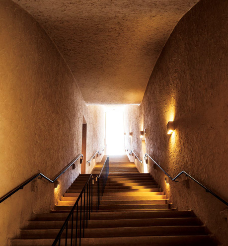 登り窯內部を彷彿させる大階段。荘厳な光に包まれる