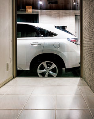 玄関ホールの窓からのぞく、誠之さんの愛車