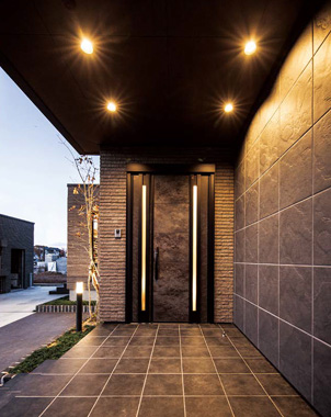上質感のある大判タイルでコーディネートした玄関ポーチ