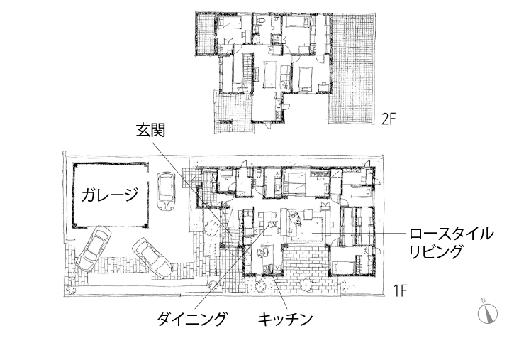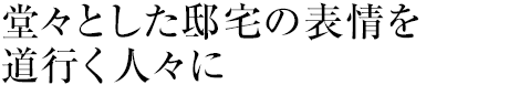 Yさまご家族が暮らすご新居は、間口が広い土地に堂々としたシルエットを描く邸宅です。奧行きのあるバルコニーや玄関ポーチによって外観に凹凸感を描いています。さらに別棟のガレージや、道路と敷地をゆるやかに區切るゲートも同時に計畫し、敷地全體に一體感を生む総タイル張りでコーディネートされました。。